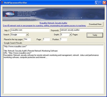 Download Web Placement Verifier 1.0 Freeware Free Software